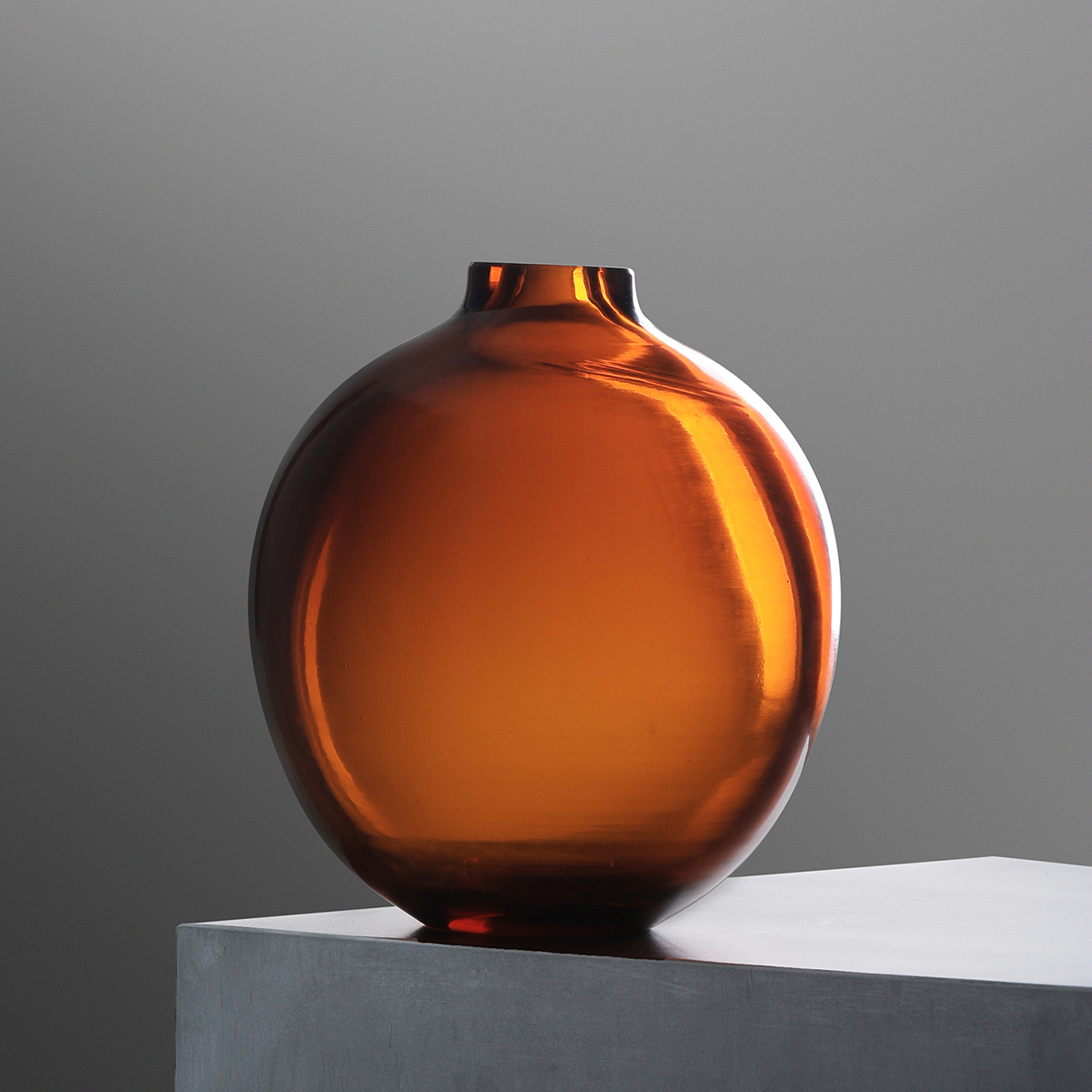 A teardrop immortalised in a globe of glass, hewn and polished to pellucid magnificence the droplet vase is aglow with amber and amethyst.