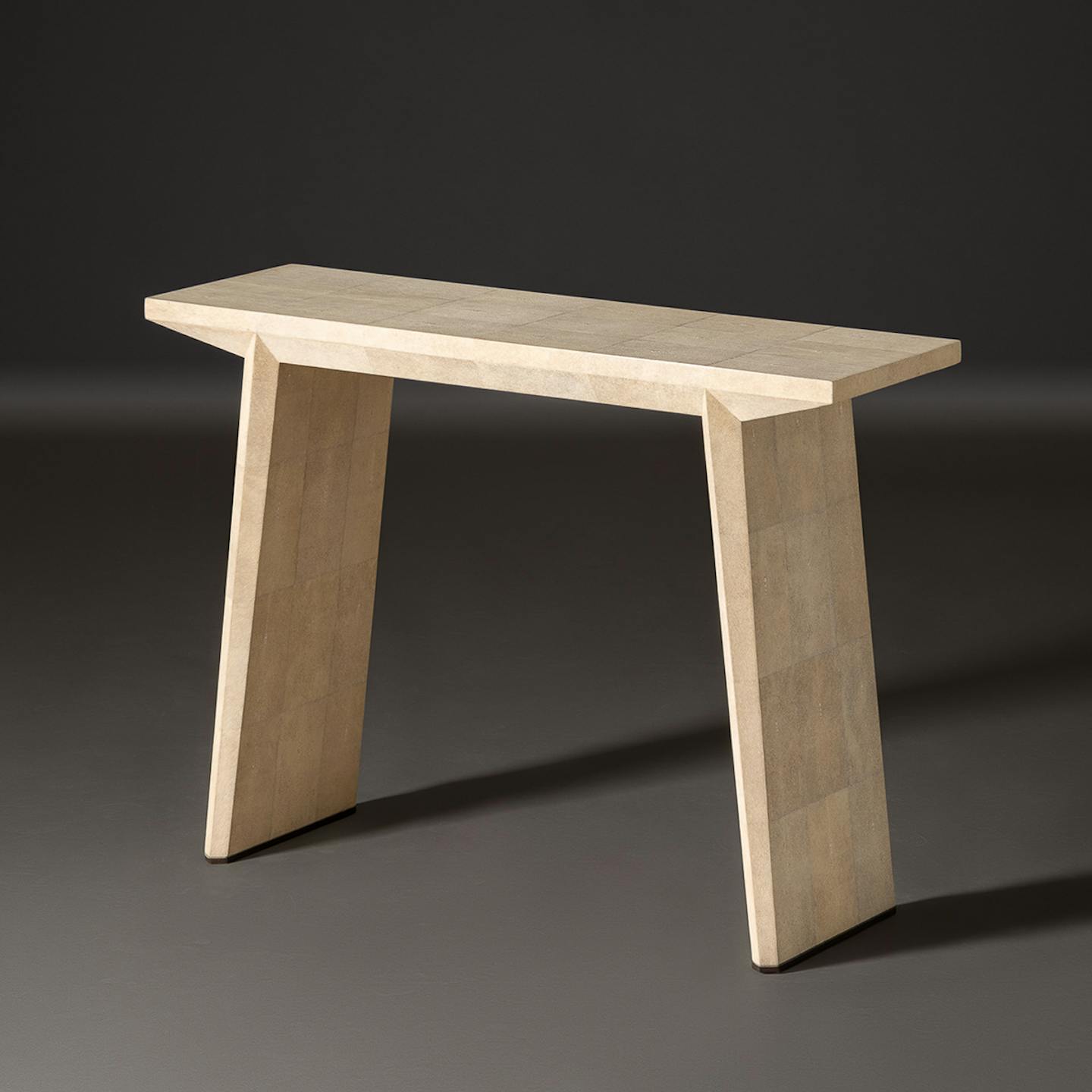 The Facet Console was born from the idea of a table made from paper and the strength and architecture created by tapering lines and folds. The feet are bronze.