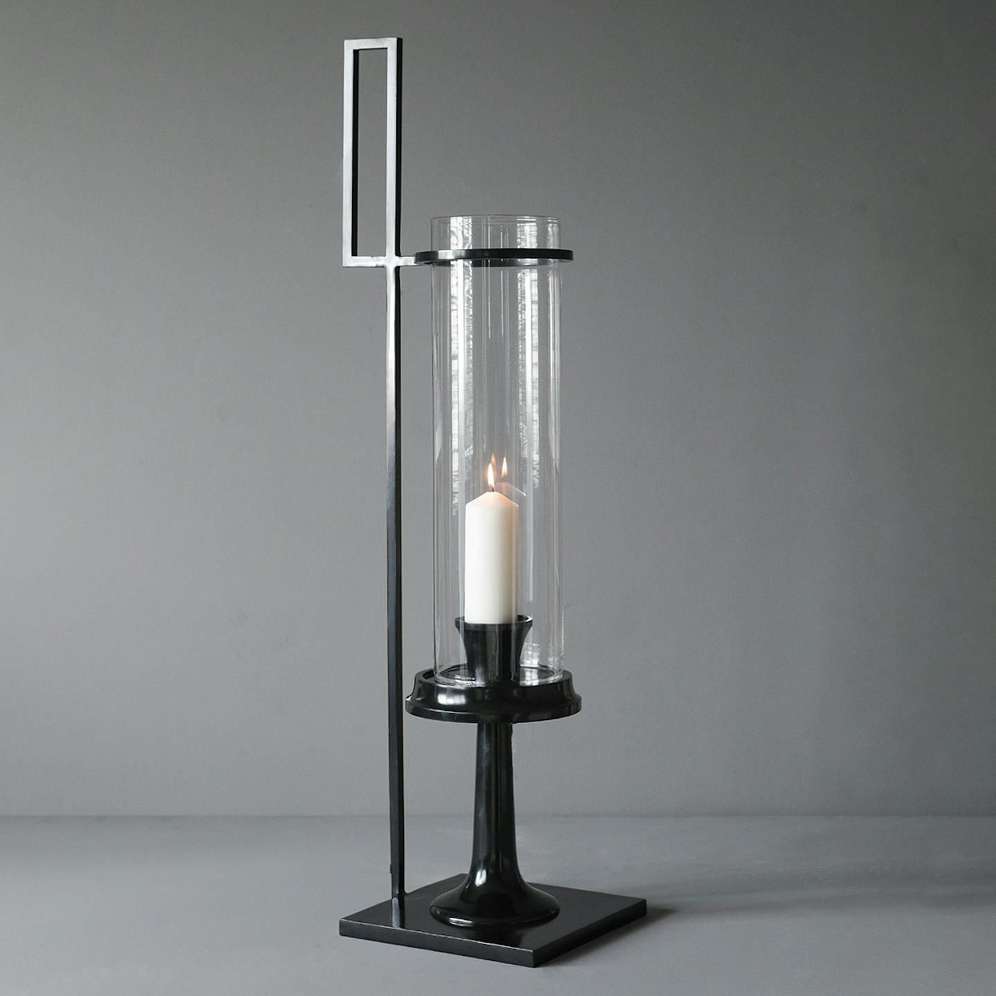 A geometric and sinuous form that sits beautifully indoors or out. Cast in six parts, with a hand-blown glass cover.