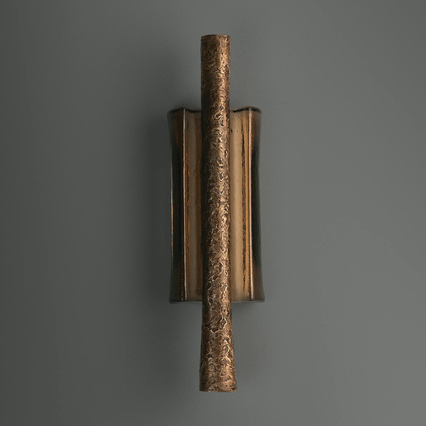 Drifting in the swells; a textured bronze form floats comfortably in a cast glass form that rises around it, refracting and diffusing light into the room.