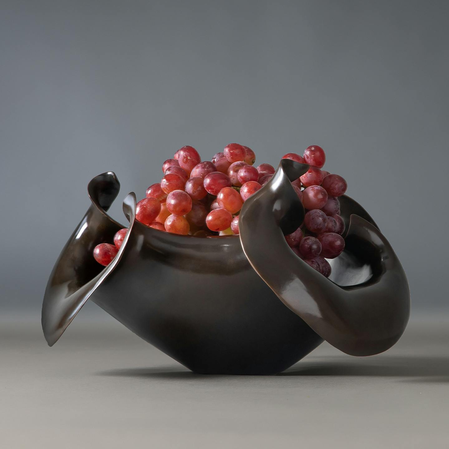 An African Violet was the inspiration for this bronze sculptural form of sensual curves and falling lobes. Astrid Dahl creates rich organic works for Alexander Lamont, inspired by the delicate petals and leaves of tropical flora.