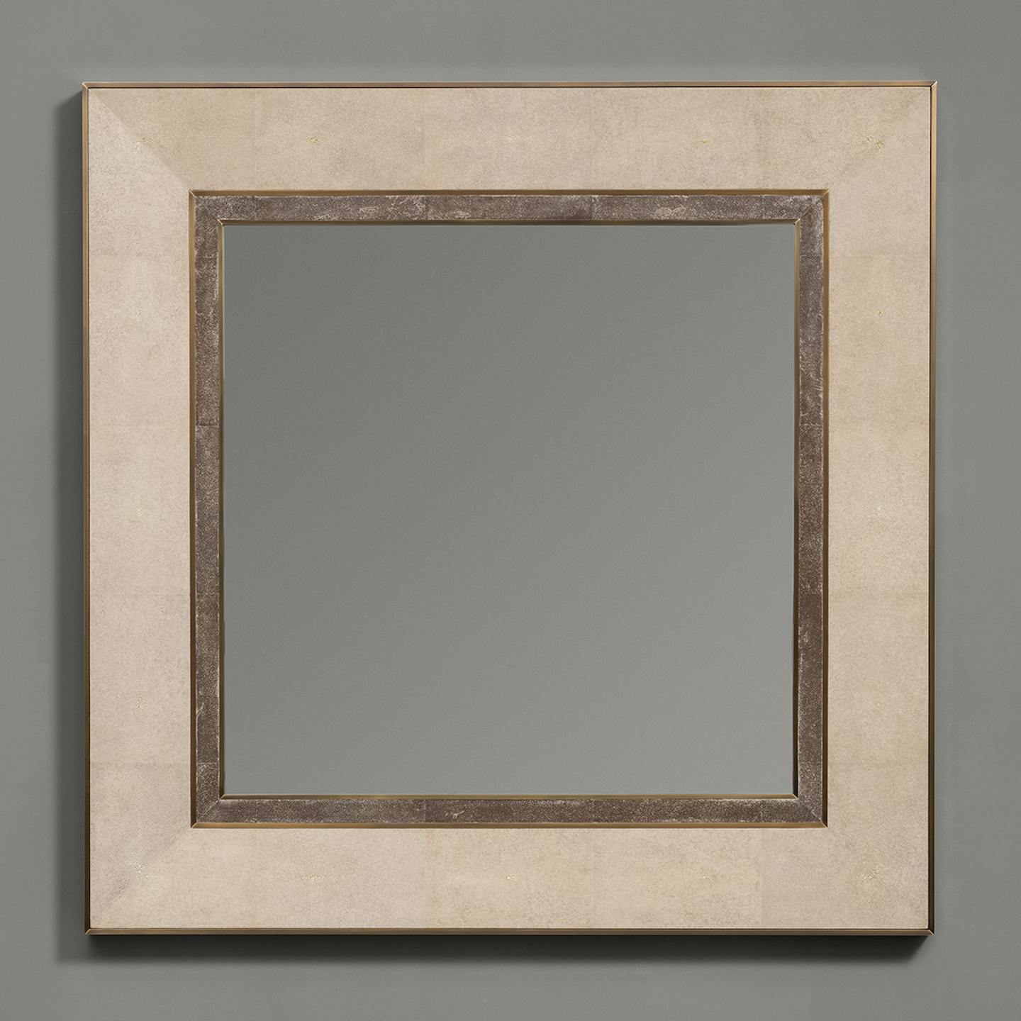 Hand-selected straw in a spectrum of natural colours pulses around this elegant mirror frame in ombré tones or two natural tones of shagreen.