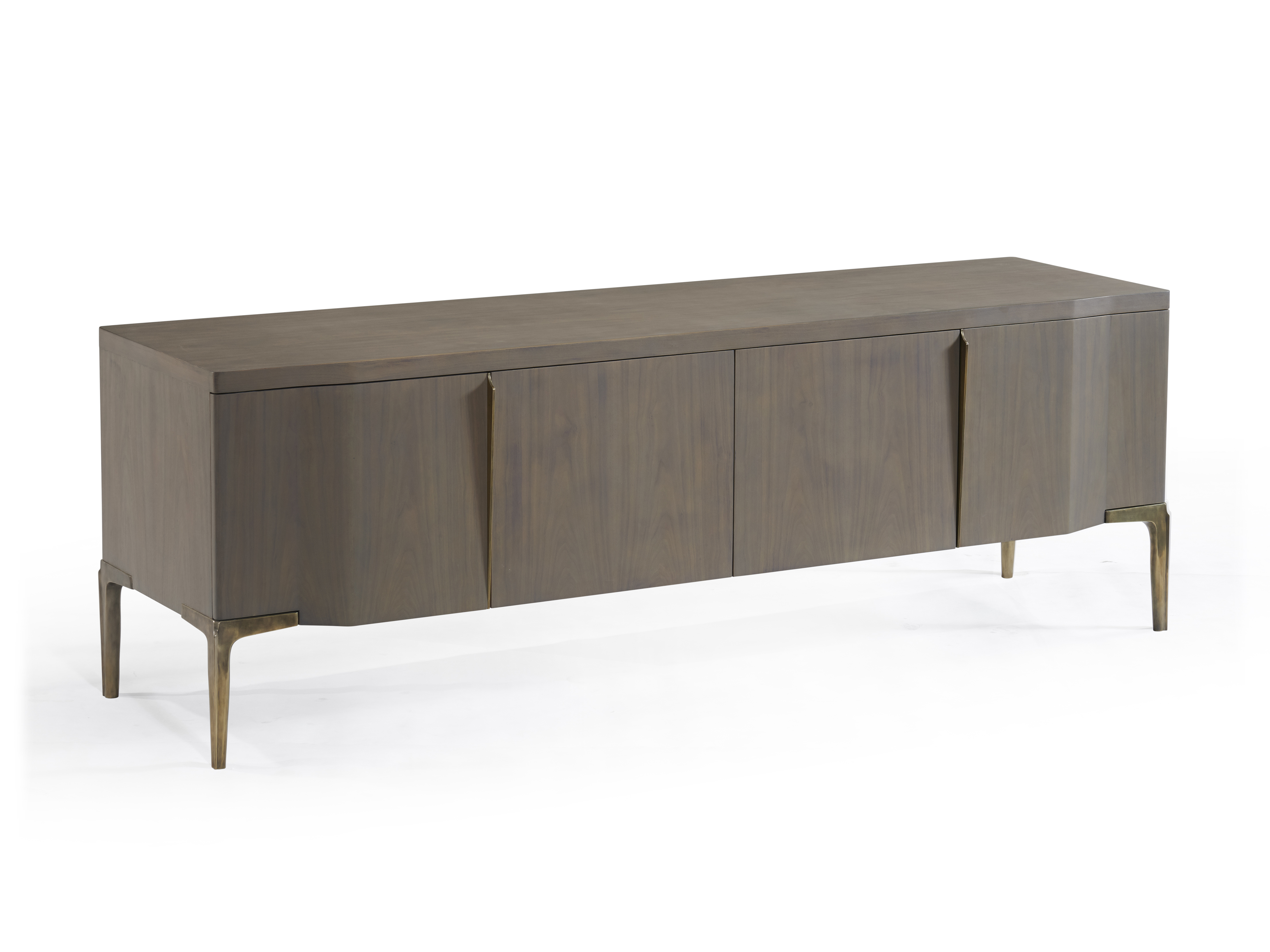 Khepera cabinets’ undulating door fronts and subtle pull reference the language of its slender and statuesque cast legs with their distinctive ridge detail which tapers down their length. This well-proportioned consoles, bedside tables, armoire and drink cabinet also incorporate cable management for medial storage making it a refined sculptural addition to any living room, dining room, bed room or entry hall.