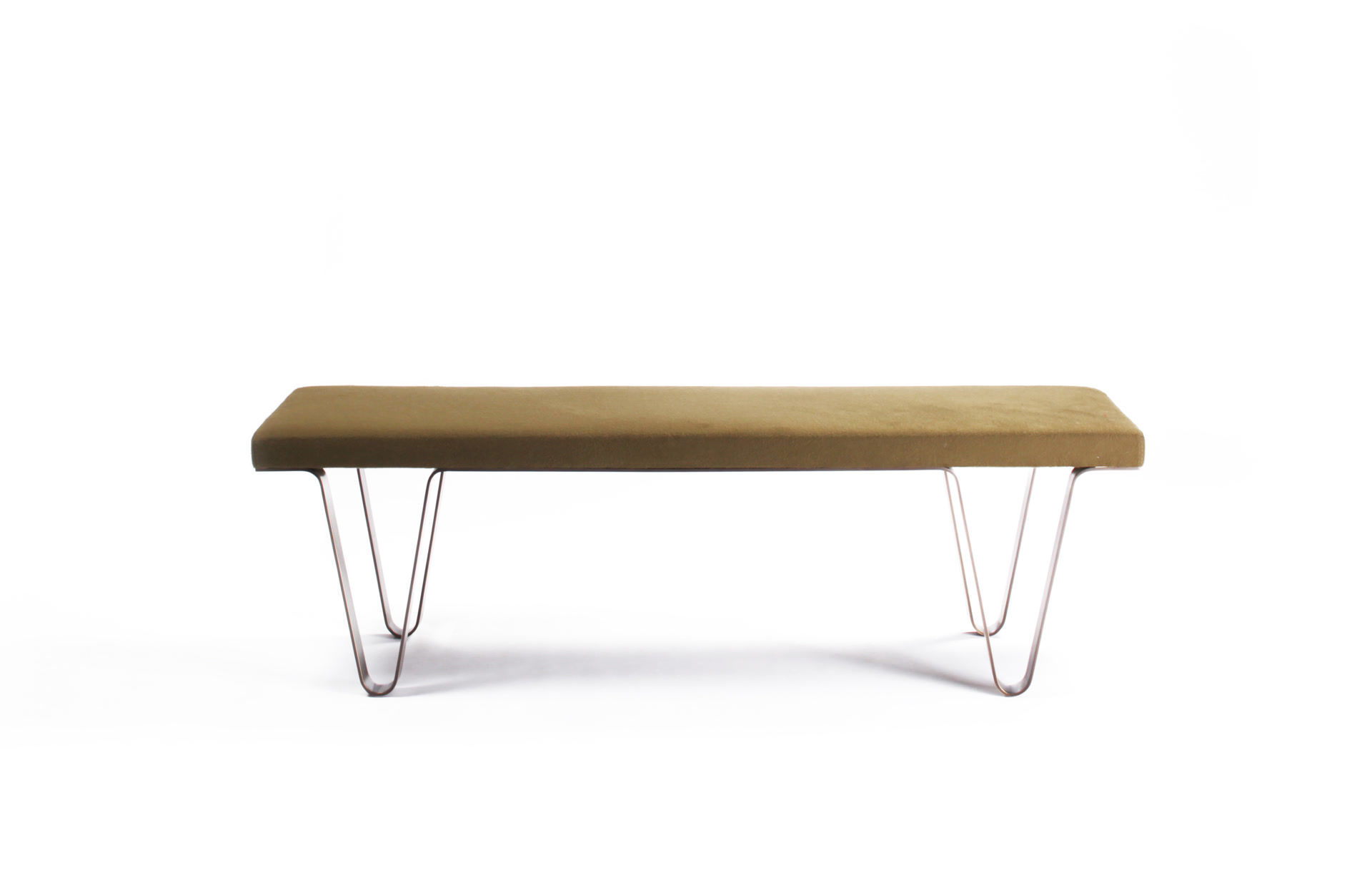 Available as a wooden topped coffee table or a sleekly upholstered bench