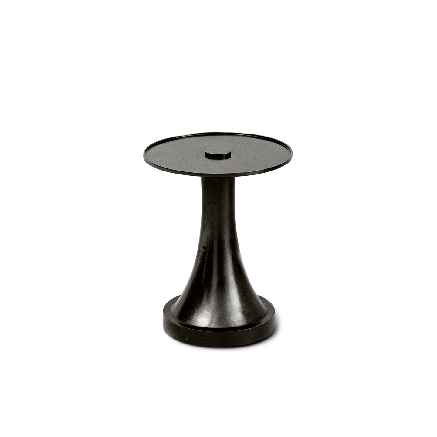 Round Smooth Bronze side table with a waxed black Patina finish. Designed by Eric Schmitt for LIAIGRE.