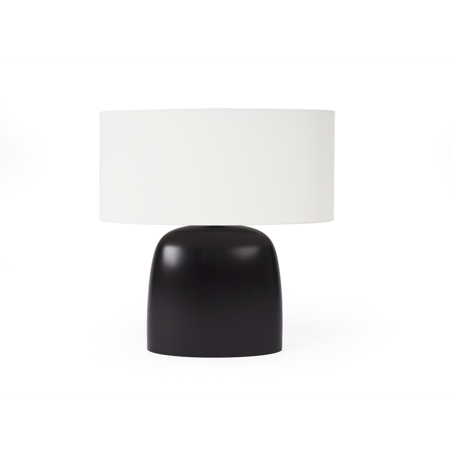 Oval table lamp in Walnut or Pine, sanblasted in White. Oval lampshade.