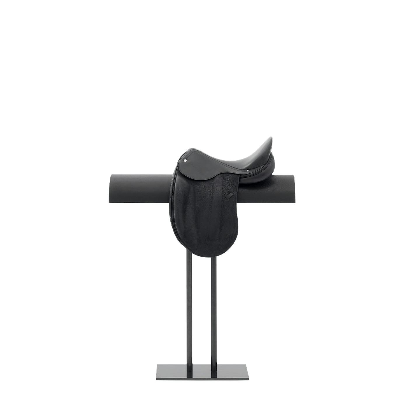 Saddle holder with leather top and upper portion of double pedestal. Metal base and lower double pedestal in Matte Chrome or dark patina finish. Available in LIAIGRE Grene or Lisse leather only (included in price).