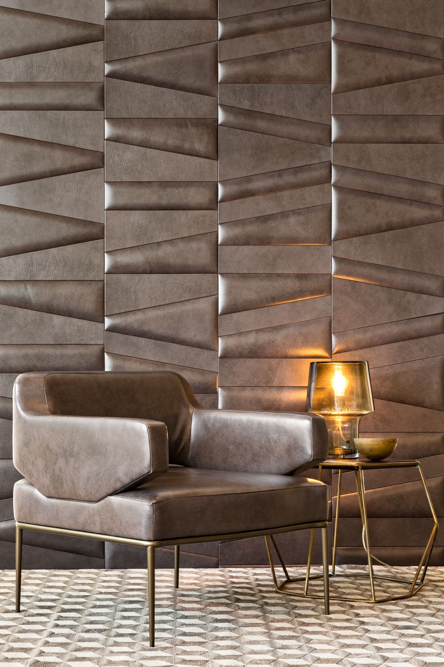 Studioart’s signature Leatherwall is a collection of exclusive leather wall coverings that perfectly marries Italian craftsmanship and contemporary taste while exploring original combinations and inviting a creative approach and resulting in a perfect balance between hand-crafted artisanal skills and contemporary flair. Simultaneously flat and padded tiles, curved and geometric designs are fused together in a unique way to create eclectic and exclusive products to enhance any type of interior.
