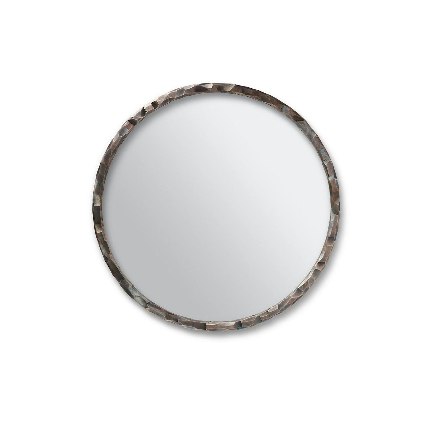 A deeply hand-faceted texture delights the eye on this Bruno Romeda inspired cast bronze mirror.